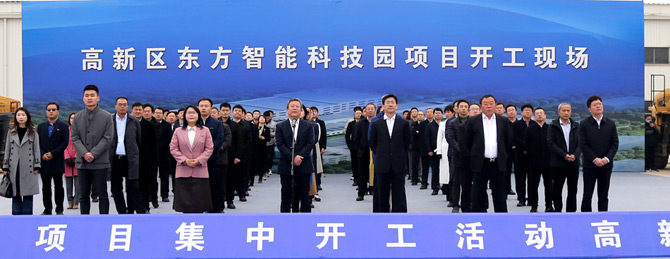 3月13日上午,烟台市举办2021年全市114个重大项目集中开工仪式,拉开了烟台万亿投资的序幕。活动采用视频连线的形式,分为1个主会场,12个分会场。其中高新区分会场设在公司宣威市四通源物流有限公司智能科技园现场,这标志着东方智能科技园区正式开工建设。